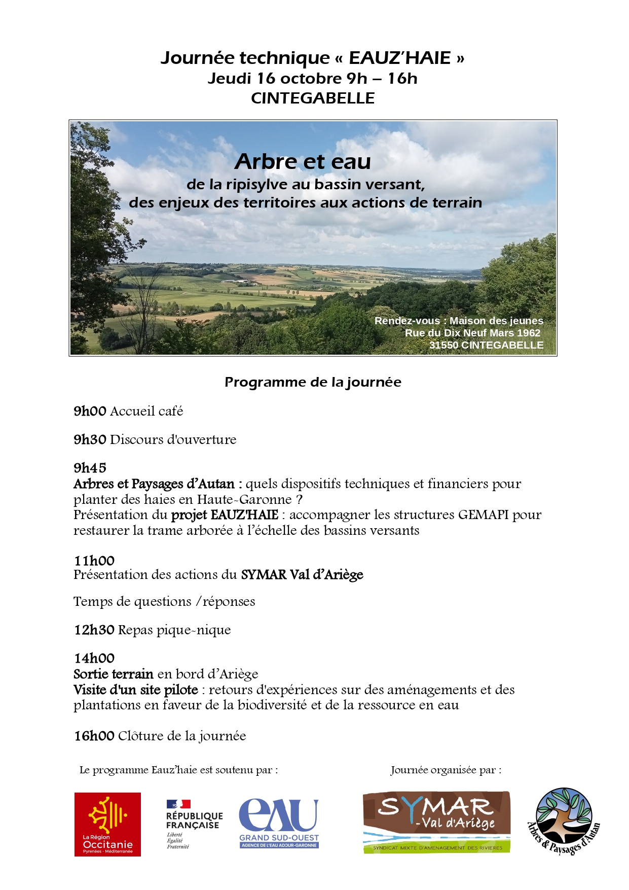 Dans le cadre du programme EAUZ’HAIE, l’association vous invite à une journée technique, organisée en partenariat avec le SYMAR Val d’Ariège.