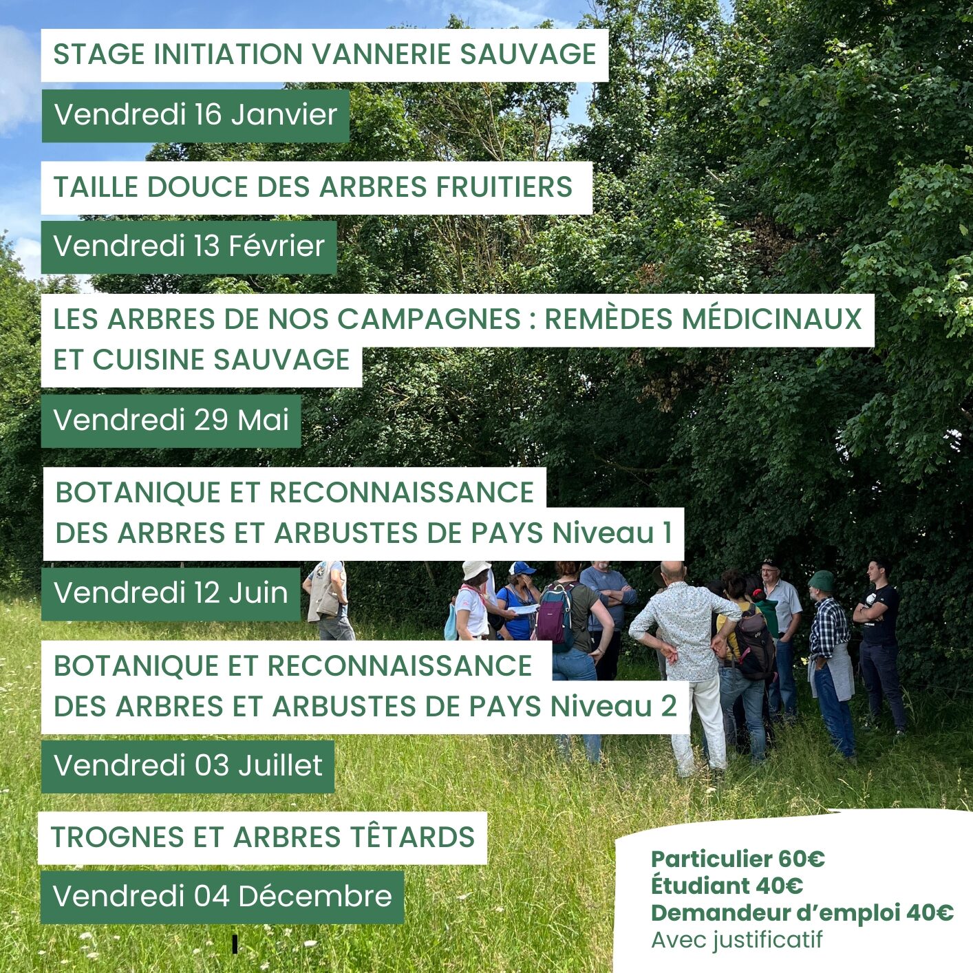 Ceci amène les formateurs à transmettre les techniques sur la taille, la greffe, la vannerie, à aborder des sujets sur l’érosion, sur la gestion des ripisylves, etc.