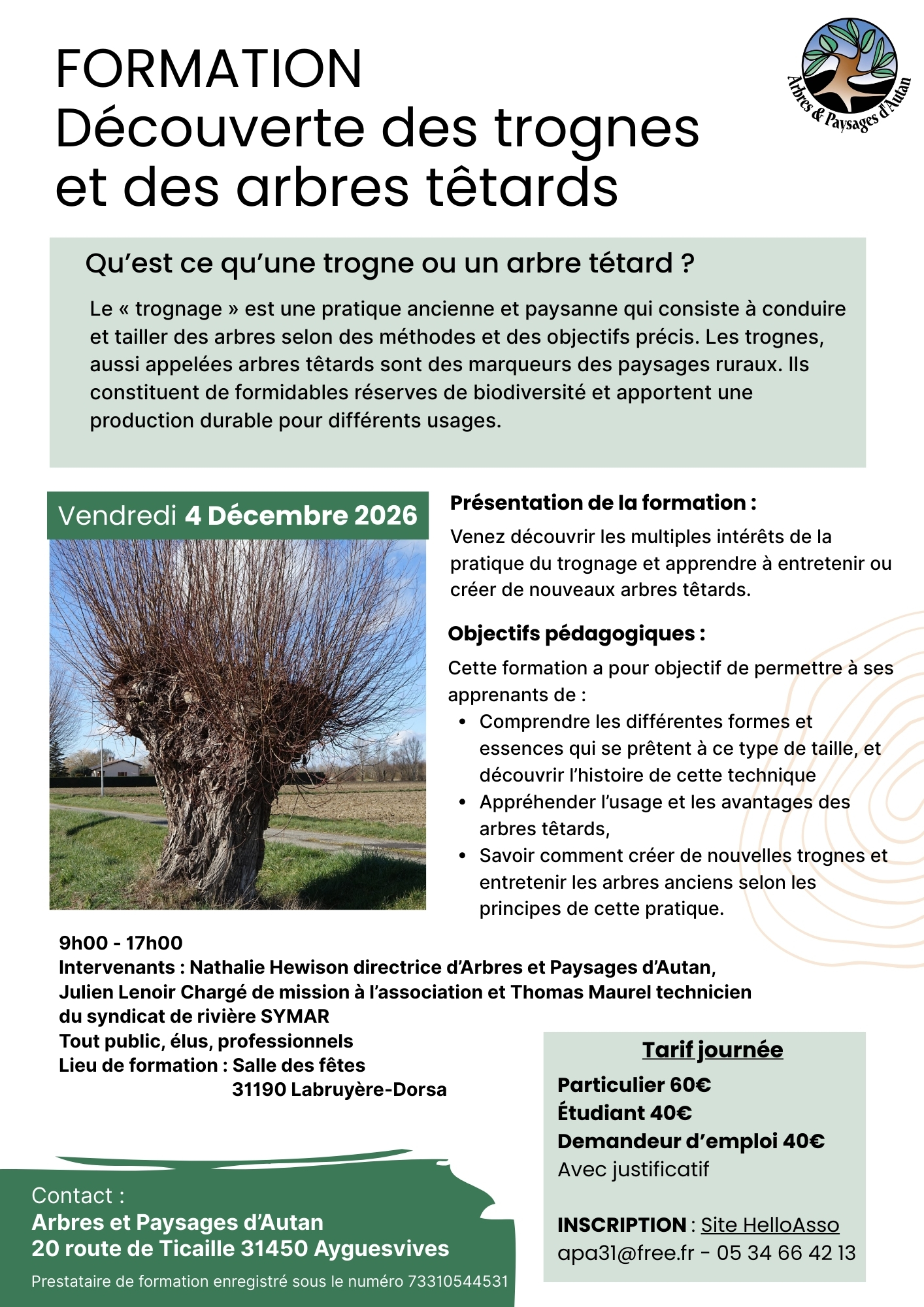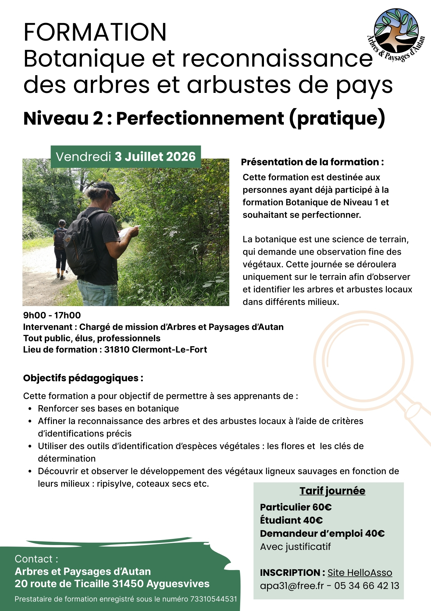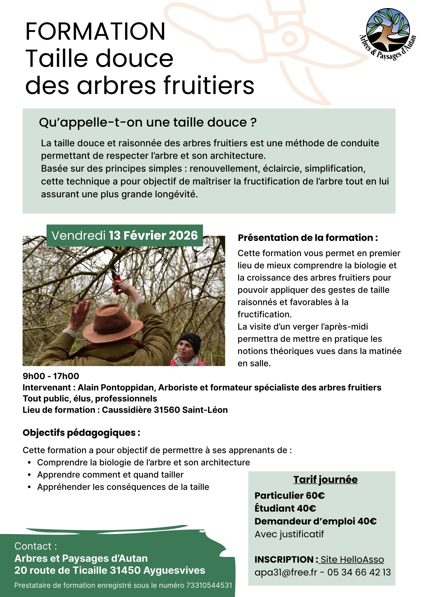 Inscription : apa31@free.fr – 05 34 66 42 13 – Site HelloAsso