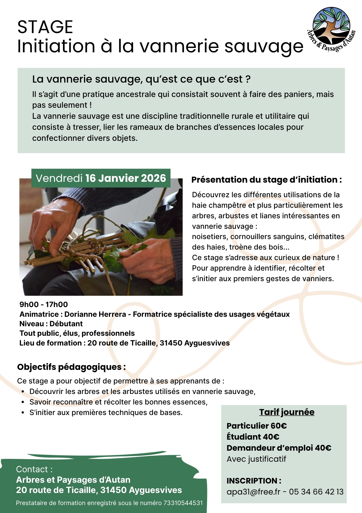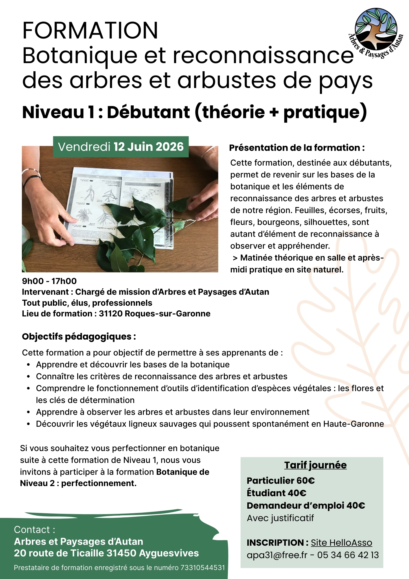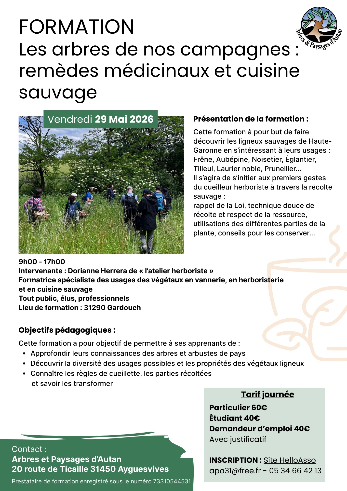 Inscription : apa31@free.fr – 05 34 66 42 13 – Site HelloAsso